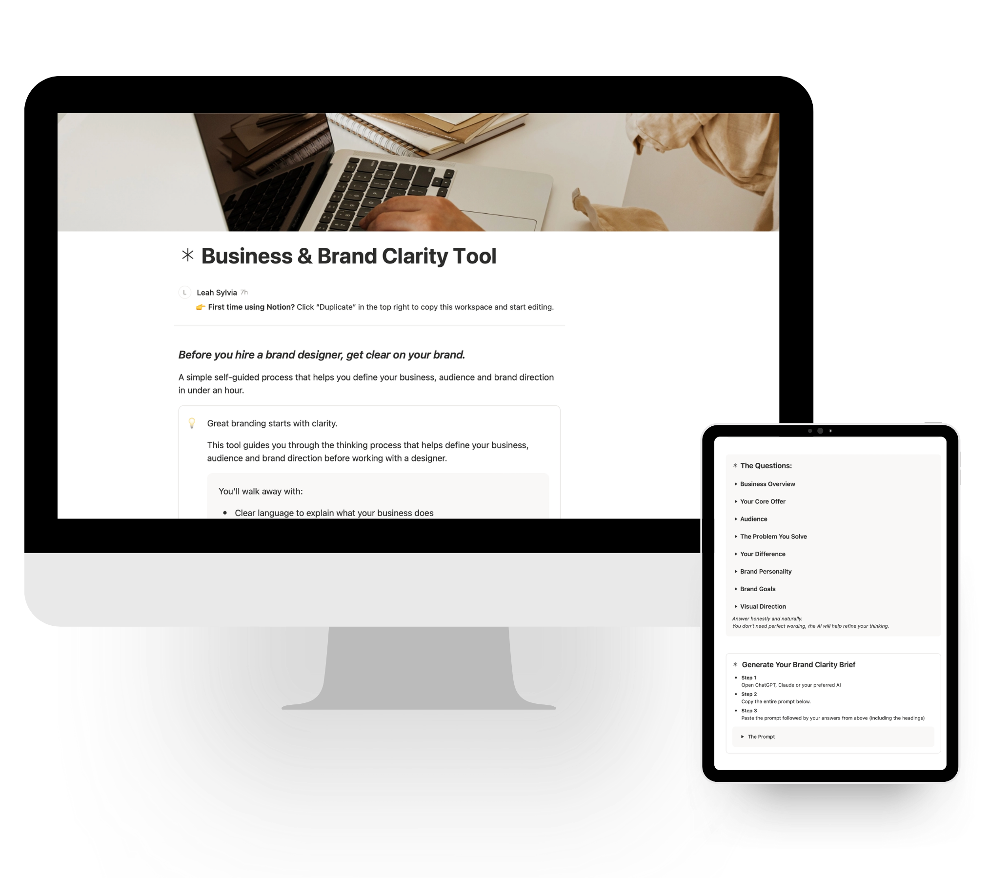 A simple self-guided process that helps you define your business, audience and brand direction in under an hour.